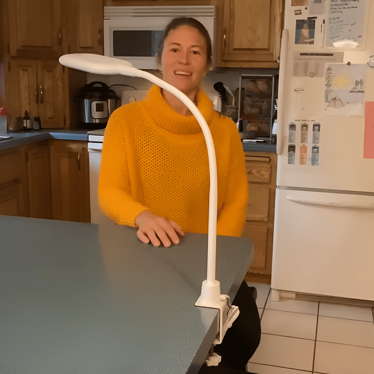 It's super bright, almost illuminating the entire space I need. The lamp's sturdy clamp and sleek white surface, along with the conveniently located switch, make it easy to detach and clip wherever I want. Whether I'm on the couch with my laptop or reading, it helps me see and doesn't disturb anyone's sleep. Its sleek, seamlessly adjustable design stands out. I've tried similar lamps from IKEA, but they weren't as bright and had an industrial vibe. The 4-foot power cord is just right, eliminating unnecessary cord clutter.